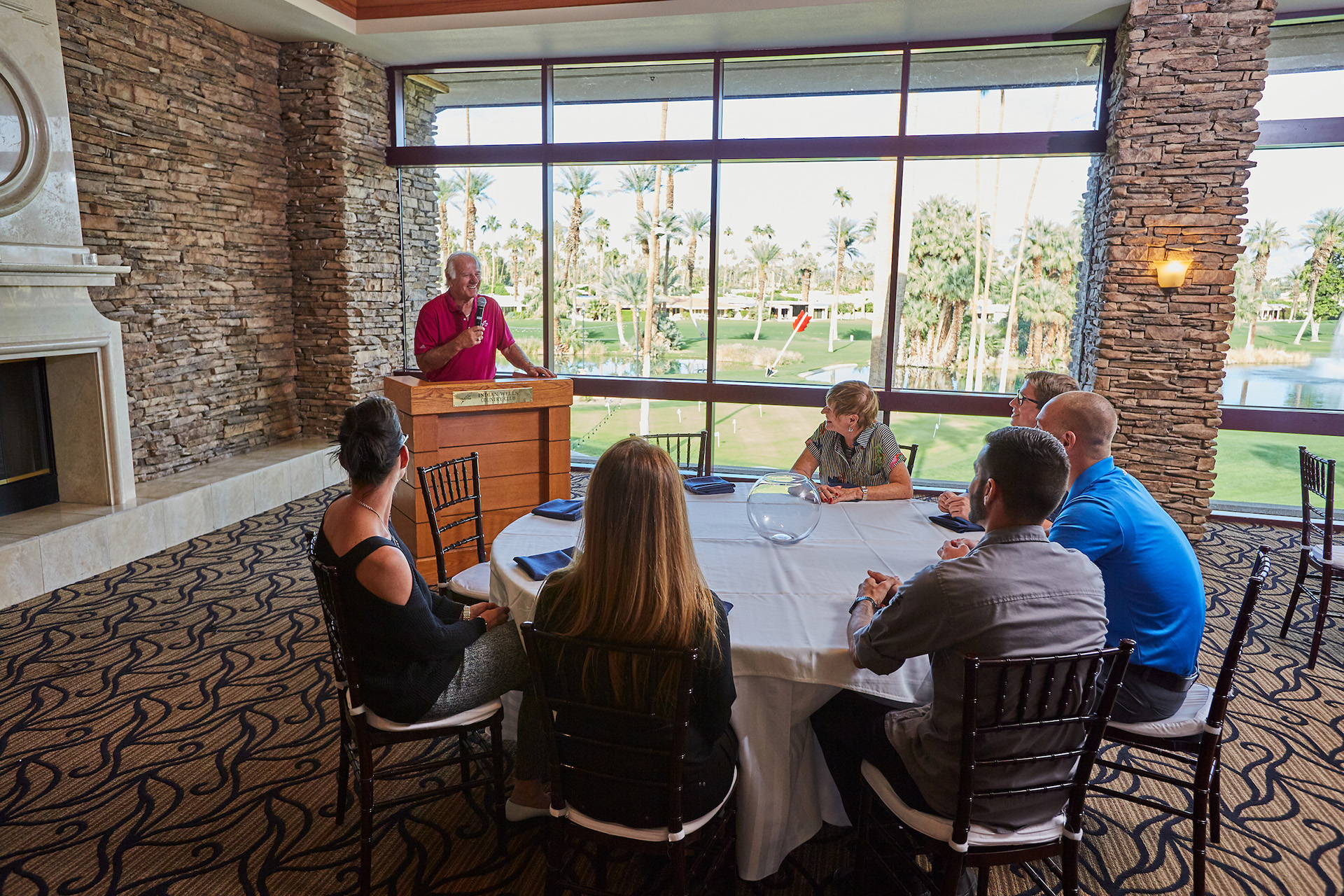 Centrally located in the Coachella Valley, just one mile from four major desert resorts, Indian Wells is the ideal location to host a successful corporate meeting or event. Our spacious clubhouse is adorned with breathtaking views, relaxing patios and a number of professional accommodations, making it perfect for entertaining clients, hosting a convention or treating your employees to a golf getaway.