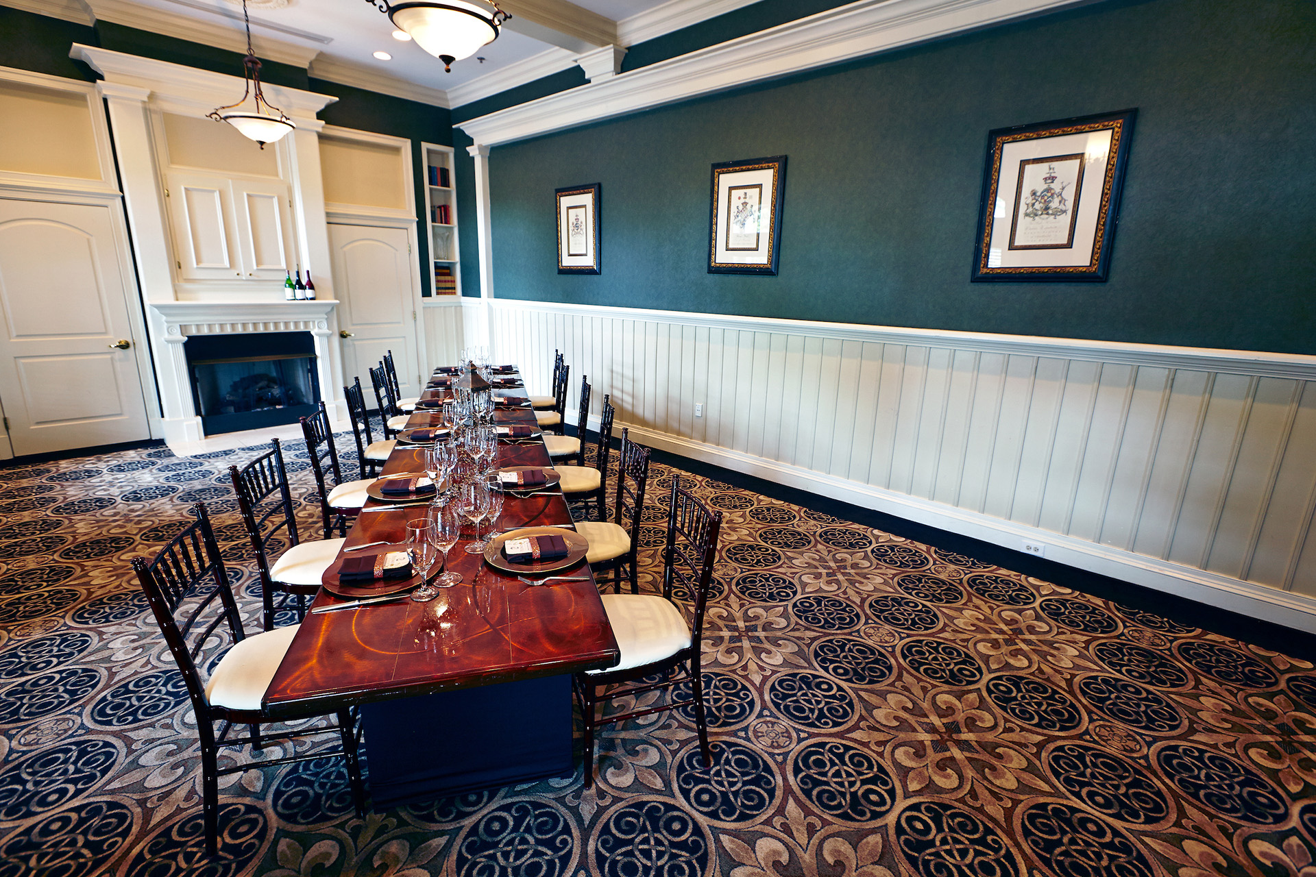 Please Note: In both the Ballroom and the Library, other styles of seating such as cocktail parties and theater seating (rows) can accommodate larger groups.