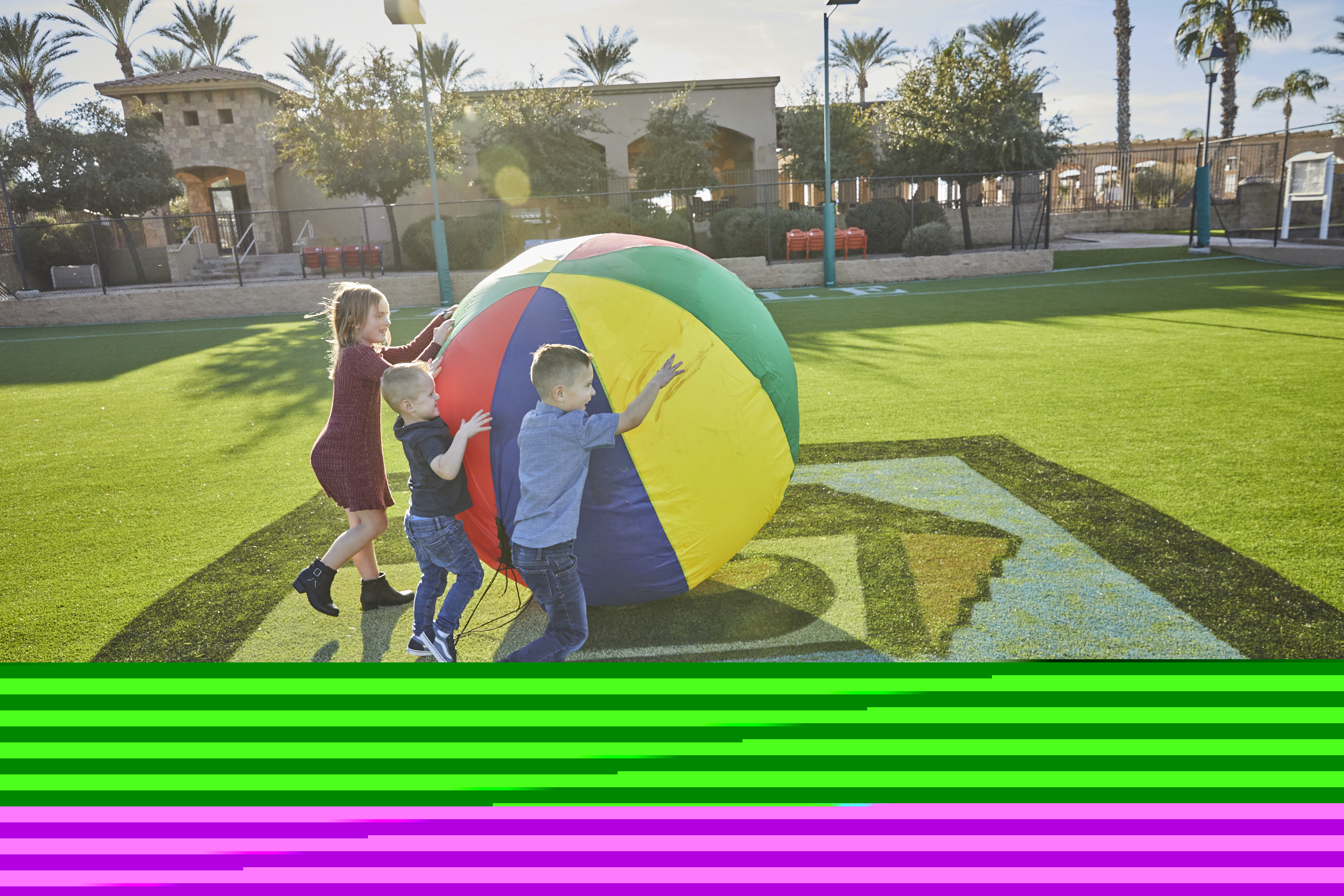A field of dreams, The Sports Zone is a 10,000-square-foot artificial turf field designed for soccer, lacrosse, dodgeball, football, wiffle ball, functional and agility training, and more. Also located here are tennis courts, a half basketball court, a batting cage and an outdoor boxing and exercise area.