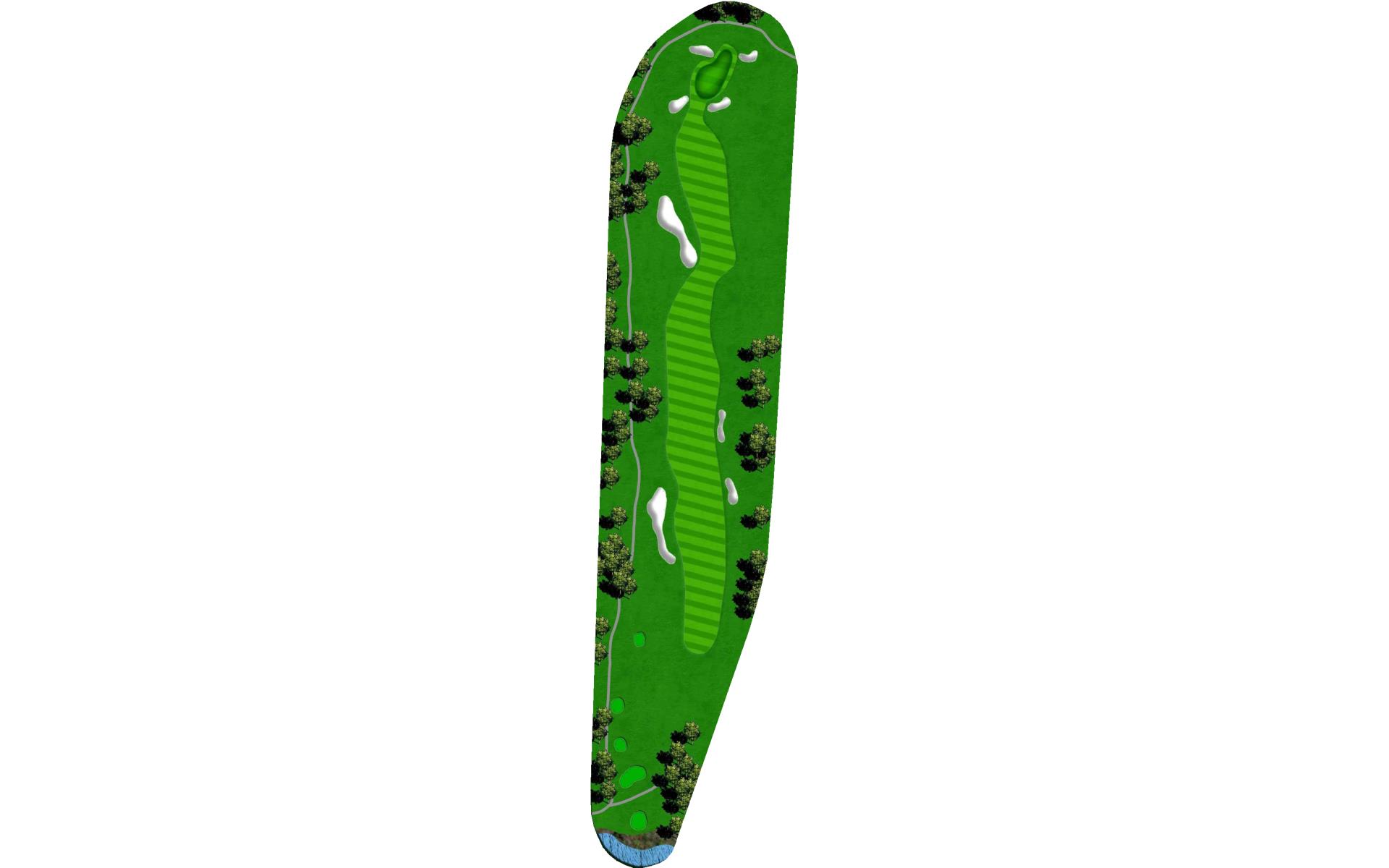 Favor the right side on this straight away Par 4. Bunkers on the left side of the fairway and green are waiting for errant shots.