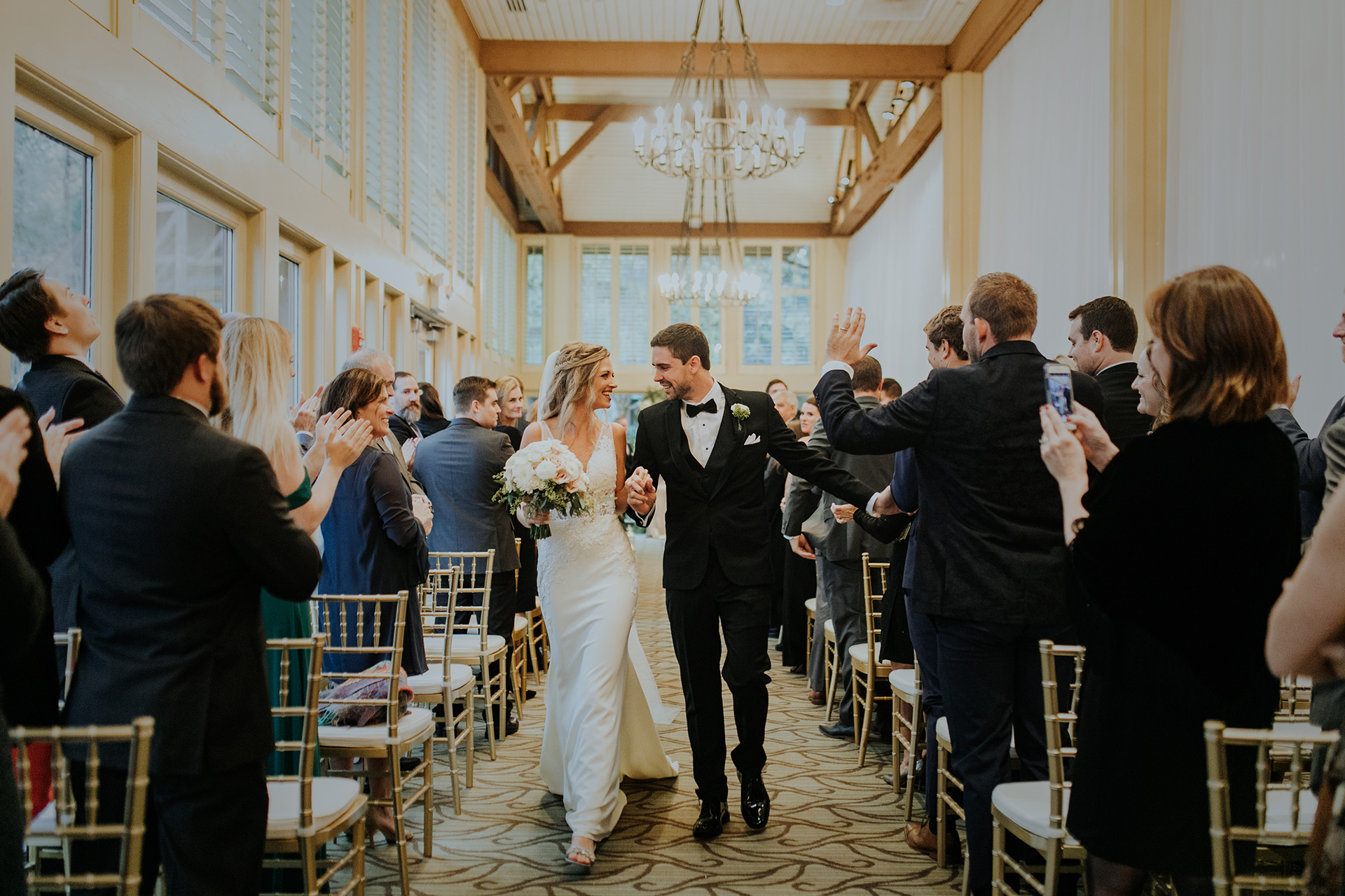 "Our clubhouse has a variety of beautiful rooms for you to choose from. • Fairway Room: 10 guests • Magnolia Room: 60 guests • Nicklaus Lounge: 60 guests seated/80 cocktail-style • Salon: 60 guests seated/100 cocktail-style • Ballroom: 300 guests seated/400 cocktail-style"