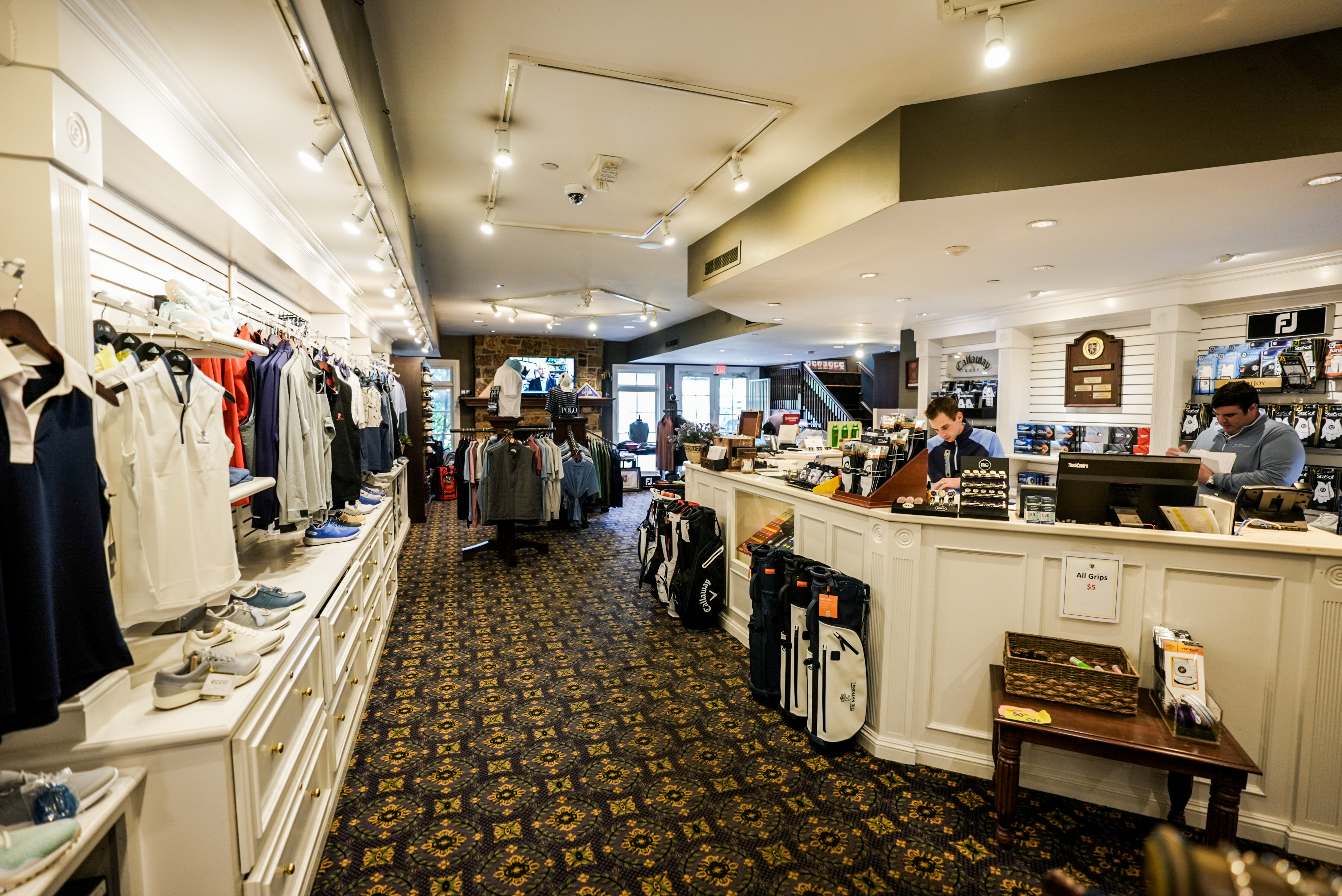 Our well-appointed Golf Shop offers members and guests the best and most current equipment available including logo merchandise and athletic wear, premium rental clubs, golf shoes, accessories and more. The Shop is well stocked with a fantastic selection of quality brands including as Callaway, Titleist, Peter Millar, Greyson, FootJoy, Adidas and much more.